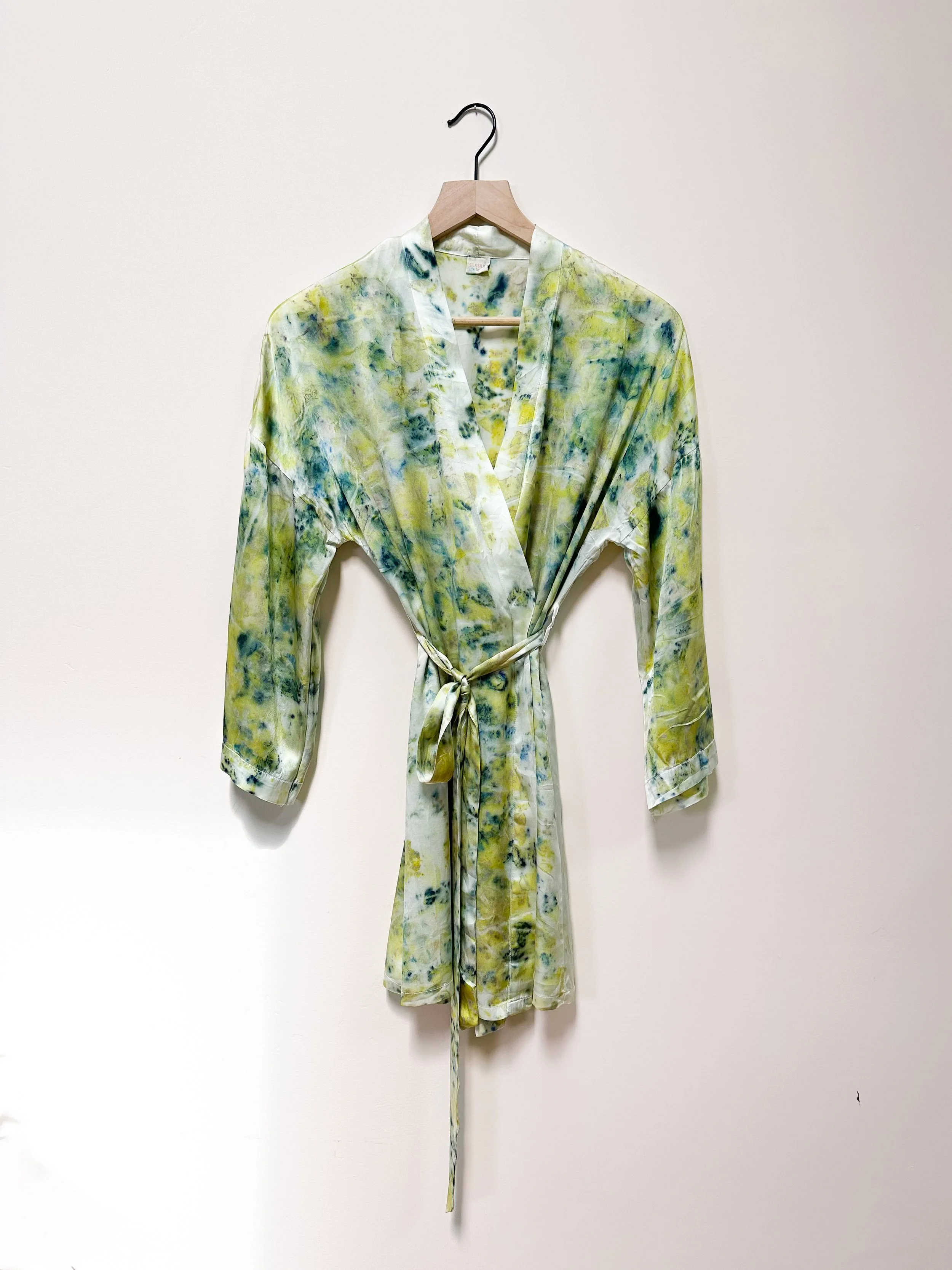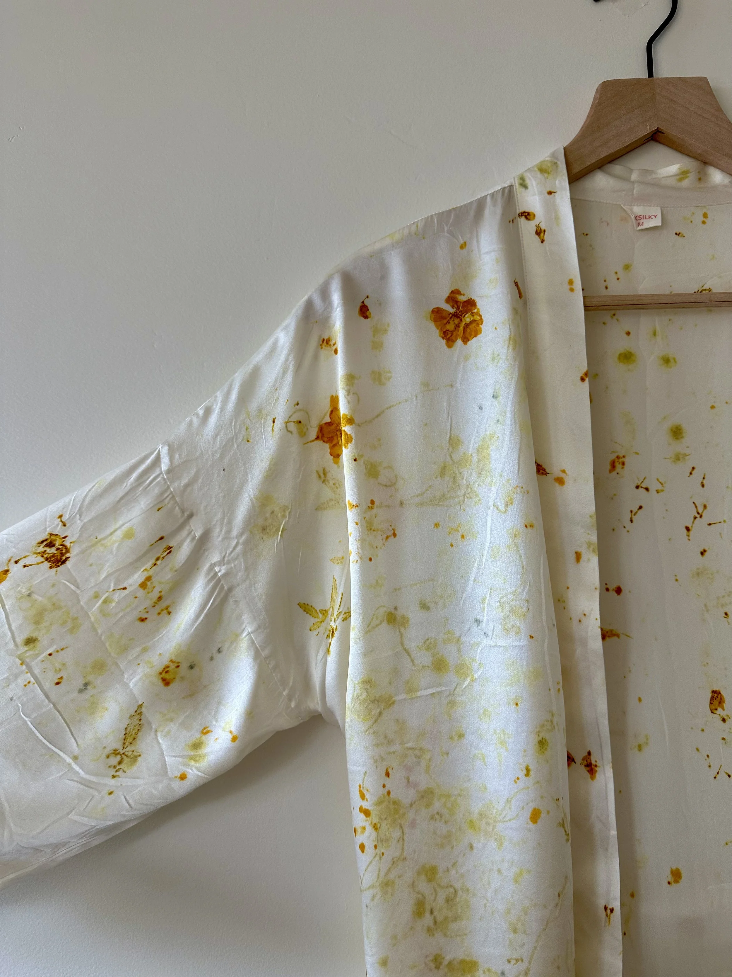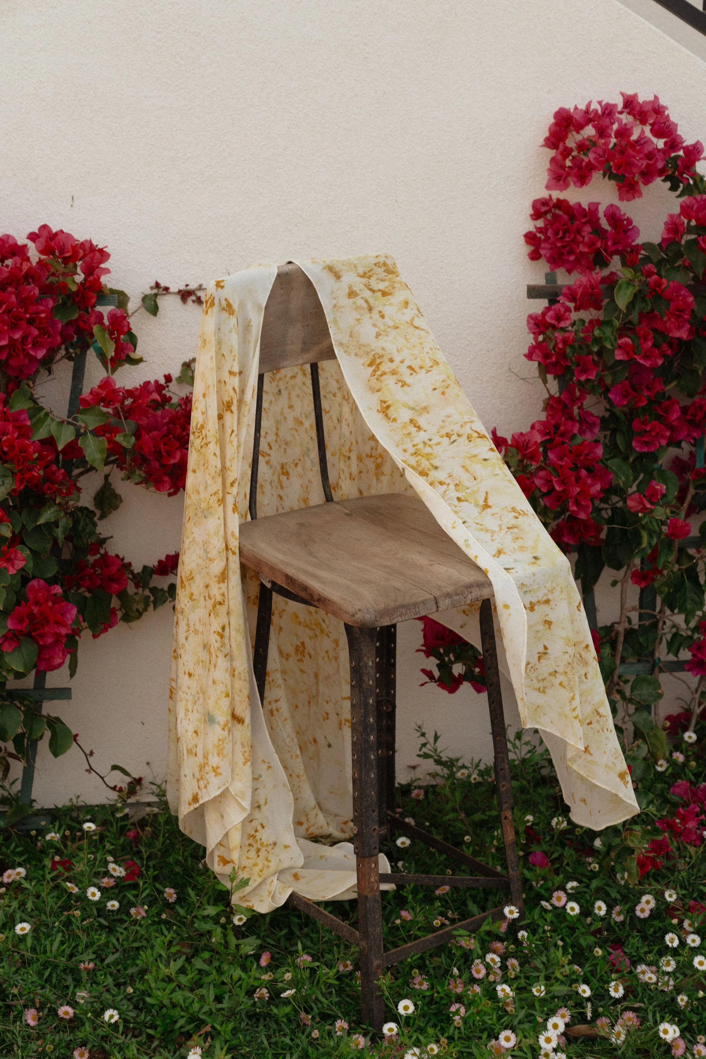 It depends on how large a product we are dyeing and how much negative space you would like to achieve. For example, for a silk robe we recommend one full bouquet or arrangement at the minimum. For a silk pillowcase or bandana, we can use a small arrangement that would fit in a Mason jar.