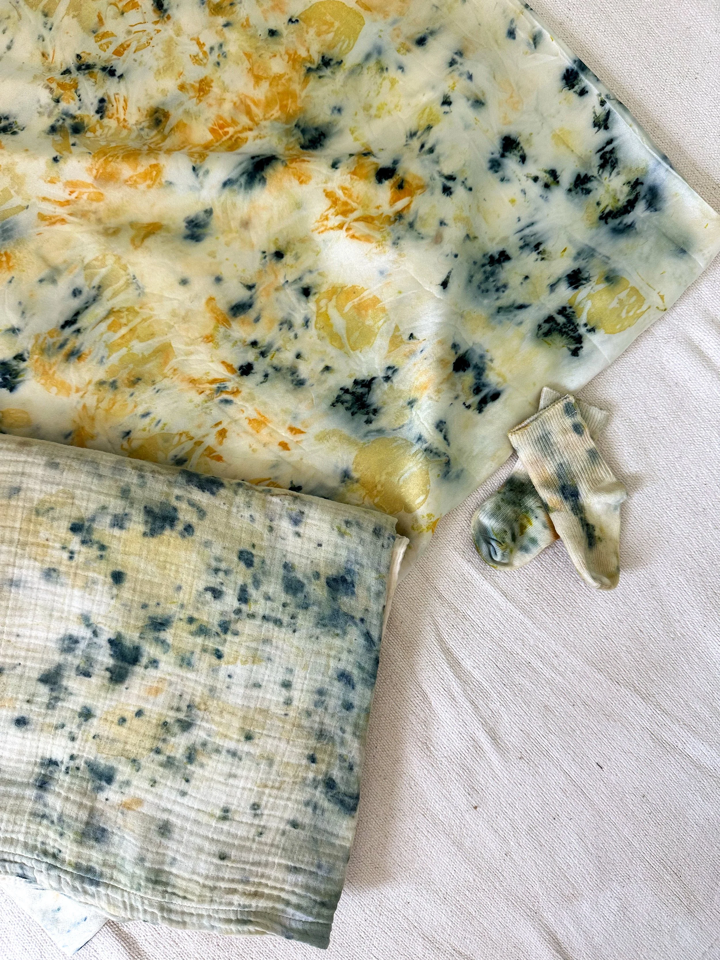 The flowers almost never dye the same color as their petals. We encourage you to be open minded. The natural, unexpected outcomes are the magic of the process. Take a look at our previous work to see the wide range of beautiful results.